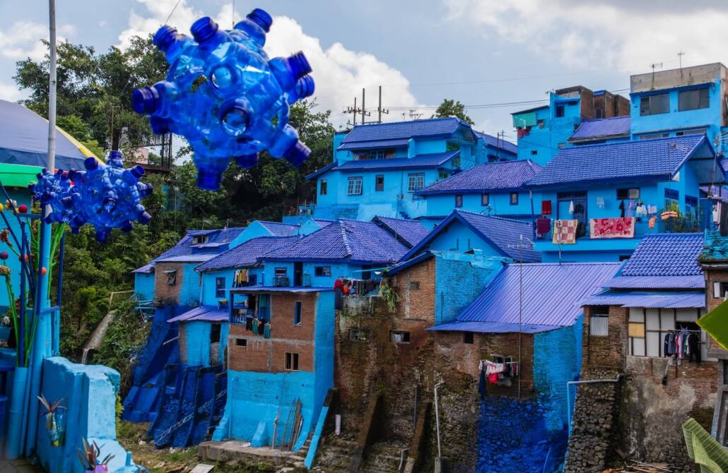 Egalement, il existe Kampung Biru Arema, le quartier peint en bleu mais nous n’avons jamais trouvé l’entrée, je pense que tout simplement nous n’étions pas motivés à chercher, marcher dans la ville nous semblait agaçant entre les voitures, les déchets par terre et les enfants qui nous demandaient de l’argent et nous suivaient. Il y a des jours où on n’a pas envie et c’était un de ces jours-là. Voici tout de même des images du quartier bleu, prises sur internet :