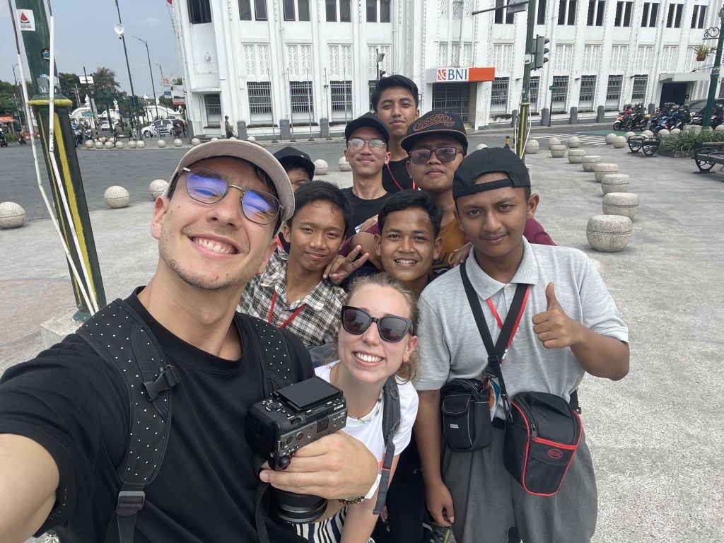 Nous avons ensuite pris la direction de Malioboro Street où vous pourrez retrouver de nombreuses boutiques & restaurants. La rue en elle-même n’a rien d’incroyable, il s’agit de la rue commerçante de Yogyakarta. Nous devons vous prévenir que beaucoup de gens sont intrigués par notre présence, mais toujours avec gentillesse. On nous a demandé pas mal de photos, et beaucoup de personnes sont venues nous parler. La preuve en photos :