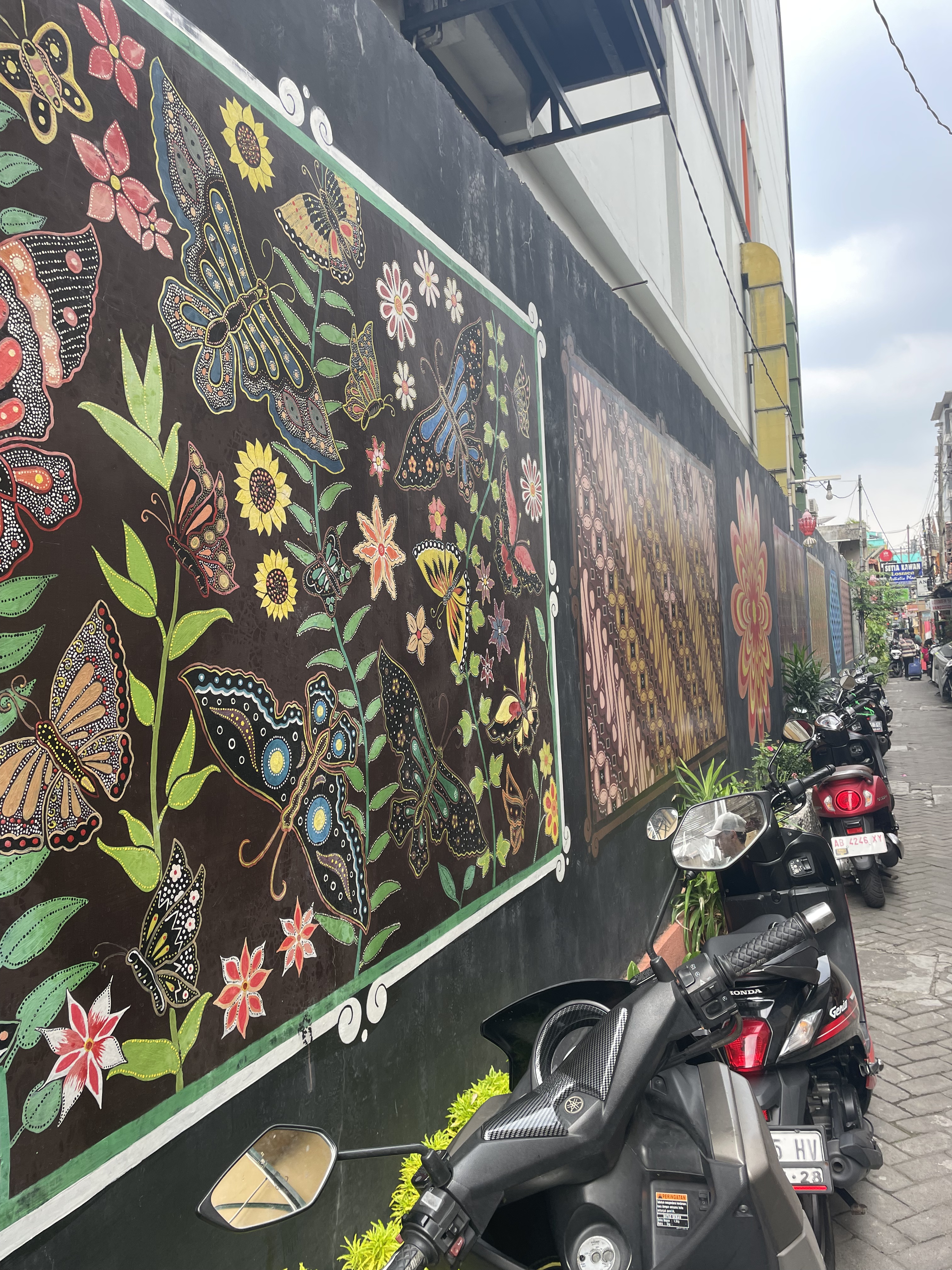 Arrivés près du Taman Sari, nous avons perdu le compte du nombre de personnes qui nous ont dit que c’était fermé et qui nous ont proposé de venir dans leur café pour tester le Luwak Coffee (un café typique de Java fait avec des excréments d’un animal !) mais nous voulions nous balader même si tout était fermé. Nous avons eu d’ailleurs eu raison parce que toutes les rues étaient vraiment charmantes et colorées. C’était hyper agréable de se balader dans la ville même si parfois, il est vrai que les trottoirs manquent un peu. On vous conseille vivement les rues autour du Kompeng Cyber, vous y trouverez beaucoup de street Art.