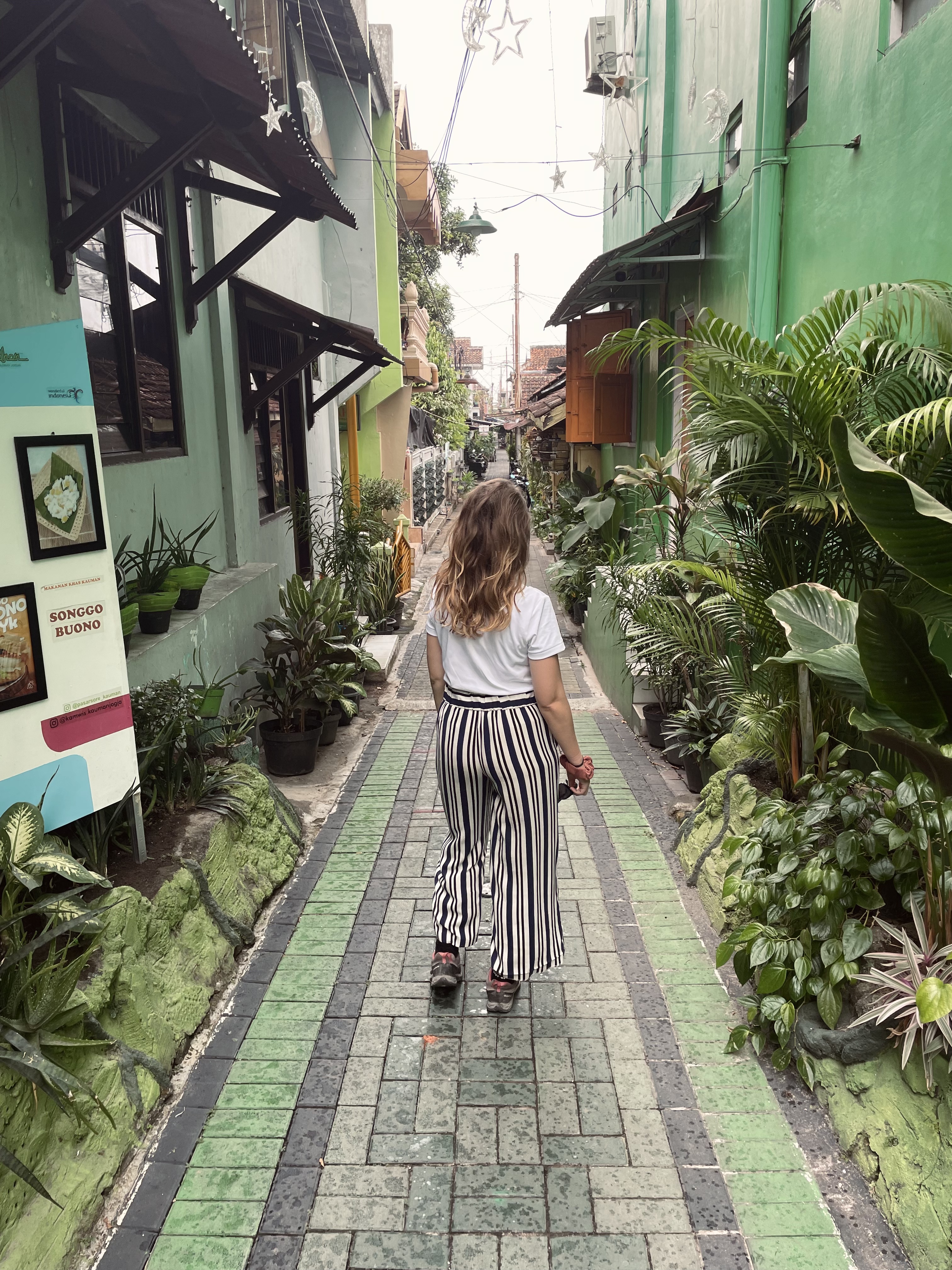 Pour nous y rendre depuis la gare, nous avons pris de petites rues très typiques et calmes avec plein de charme. On vous conseille de passer par la rue Jl. Sosrowijayan GT I No.100 et de chercher à explorer toutes ces petites ruelles vraiment agréables.