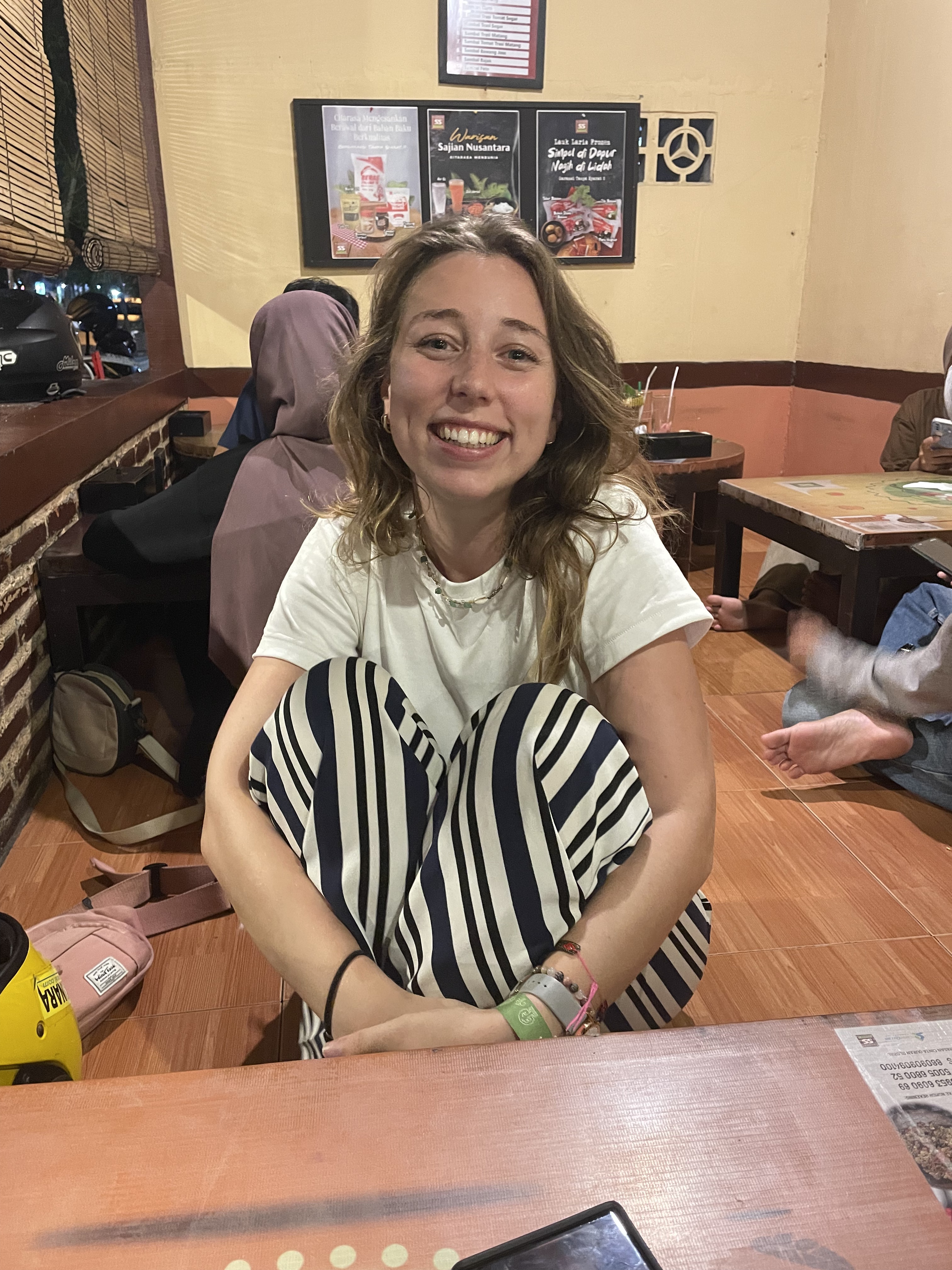 - Option 100% local : waroeng spesial sambal. Recommandé par notre hostel. Bel effet de surprise en rentrant quand nous nous sommes rendu compte qu’il n’y avait pas de chaise, et que nous allions manger sur une table basse près du sol sans nos chaussures. Perso, on adore ! Le premier problème que nous avons rencontré est que la carte n’était pas traduite en anglais, nous ne connaissions aucun plat et il n’y avait pas de photos. Nous avons galéré une bonne dizaine de minutes avant que la serveuse ne sente notre détresse et ne vienne nous aider. Nous avons finalement pu commander de nombreux plats à un prix plus qu’abordables !