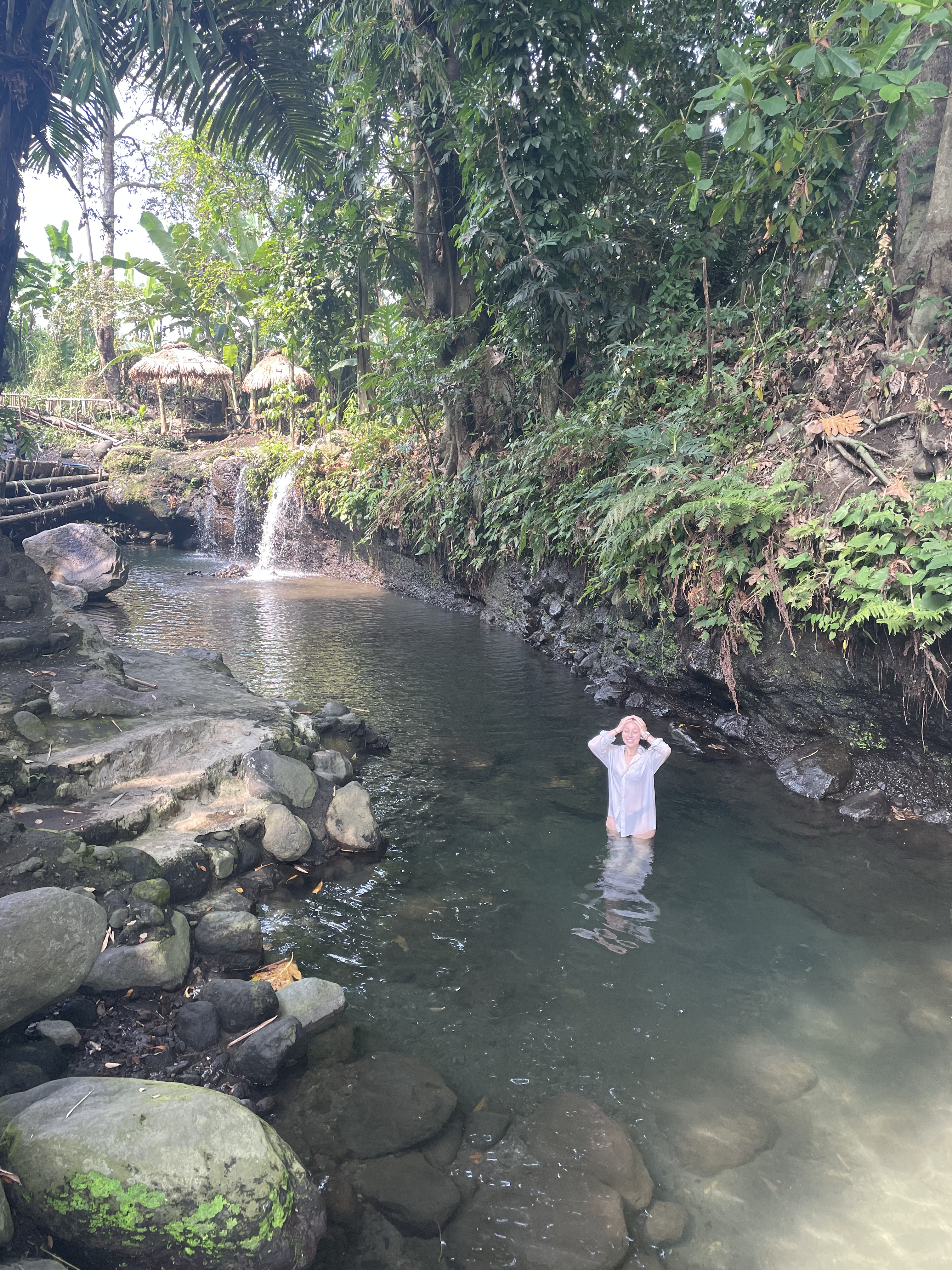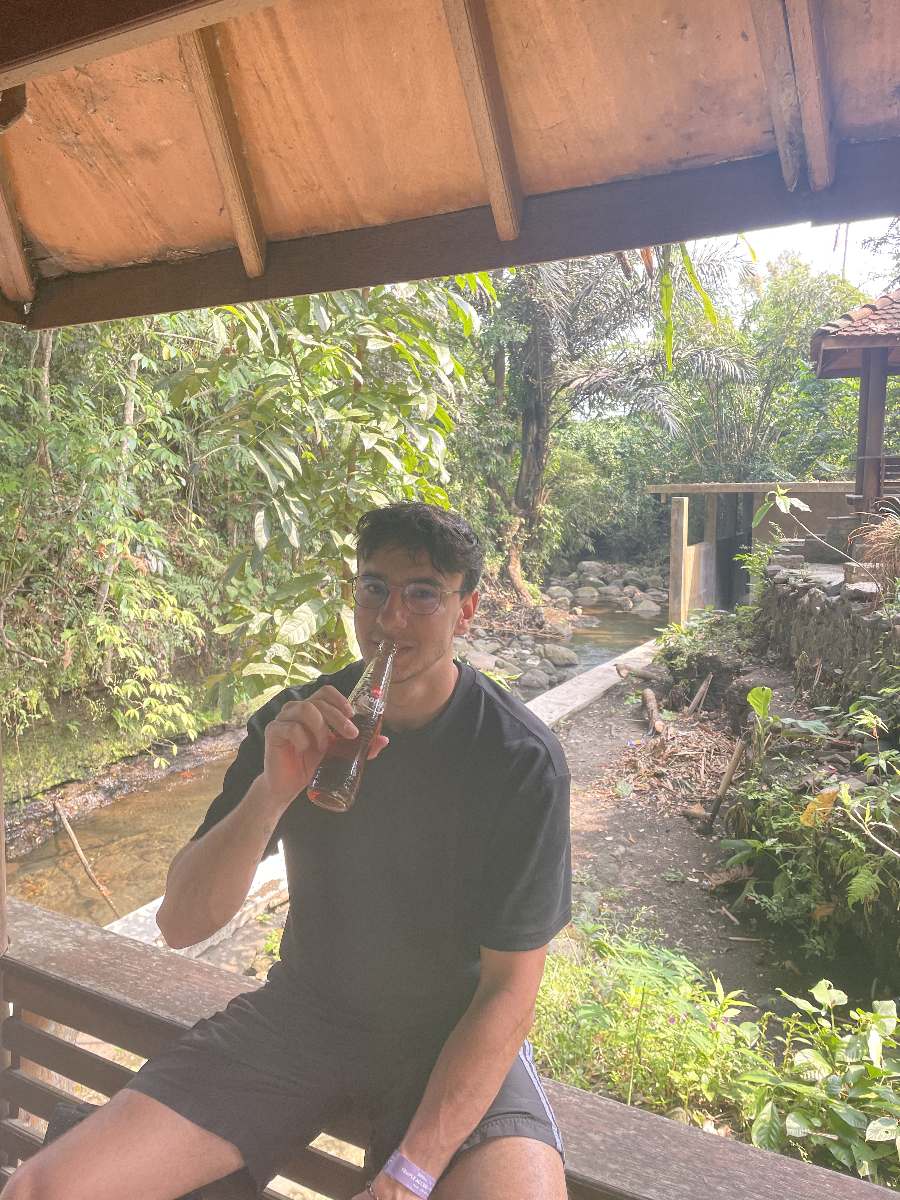 Pour faire une activité entre les deux temples, et pour couper un petit peu la route qui est plutôt longue jusqu’à Prambanan, nous nous arrêtons dans un endroit qui s’appelle le Blue Lagoon. Là-bas, nous avons pu nous rafraîchir dans la rivière, et ça a fait beaucoup de bien vu la chaleur. L’entrée est bien entendu payante, mais ce n’était pas très cher. En plus, vous avez le droit à une boisson et un snack inclus dans le billet d’entrée.