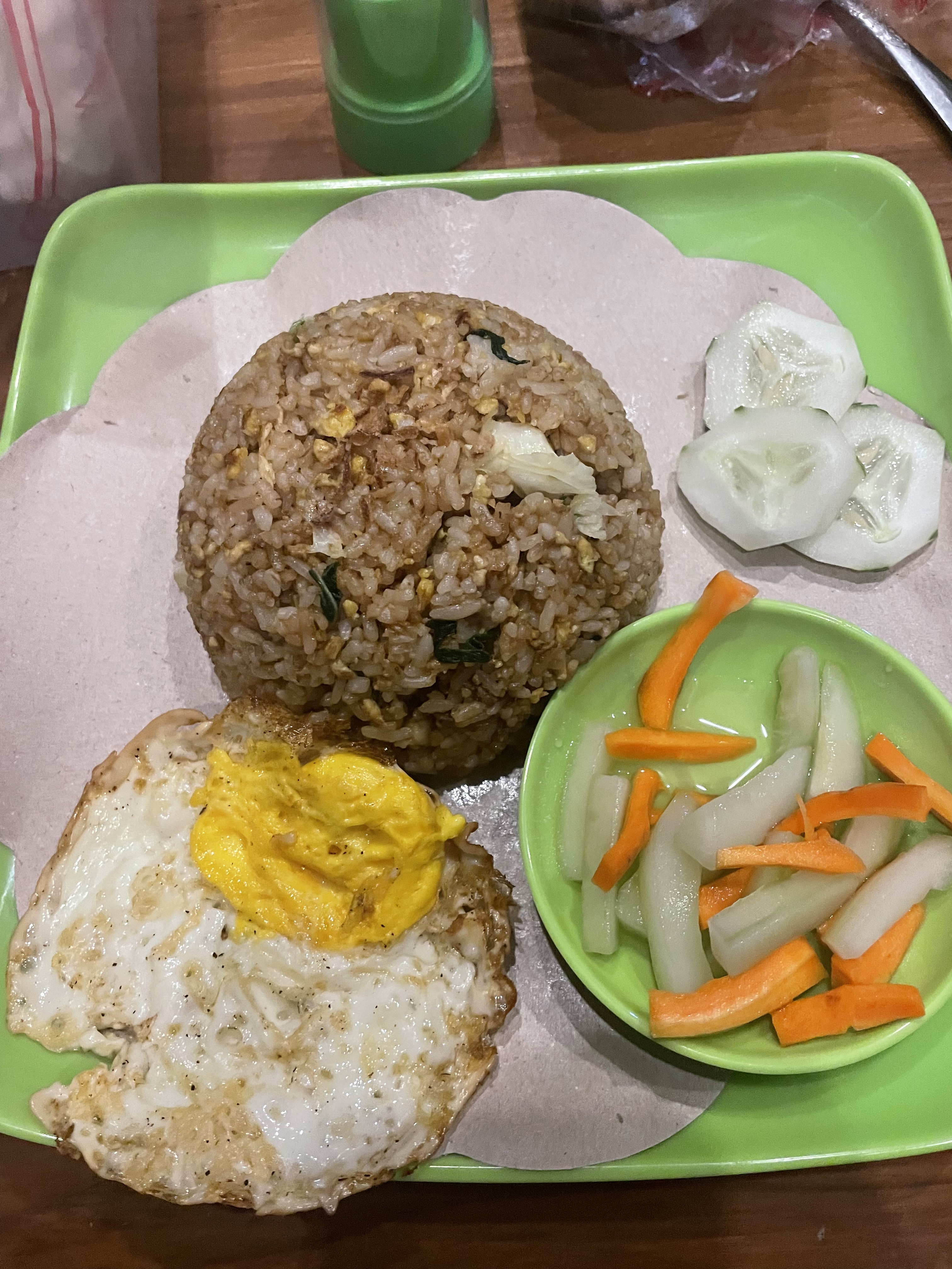 Pour manger, il y avait un petit warung un peu plus haut, sur la route principale qui proposait des nasi goreng et d’autres plats locaux excellents. Il s’agit du Warung Bu Susiati. Pour trois fois rien, nous avons pu nous régaler et les personnes étaient d’une gentillesse incroyable.