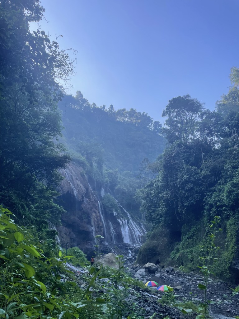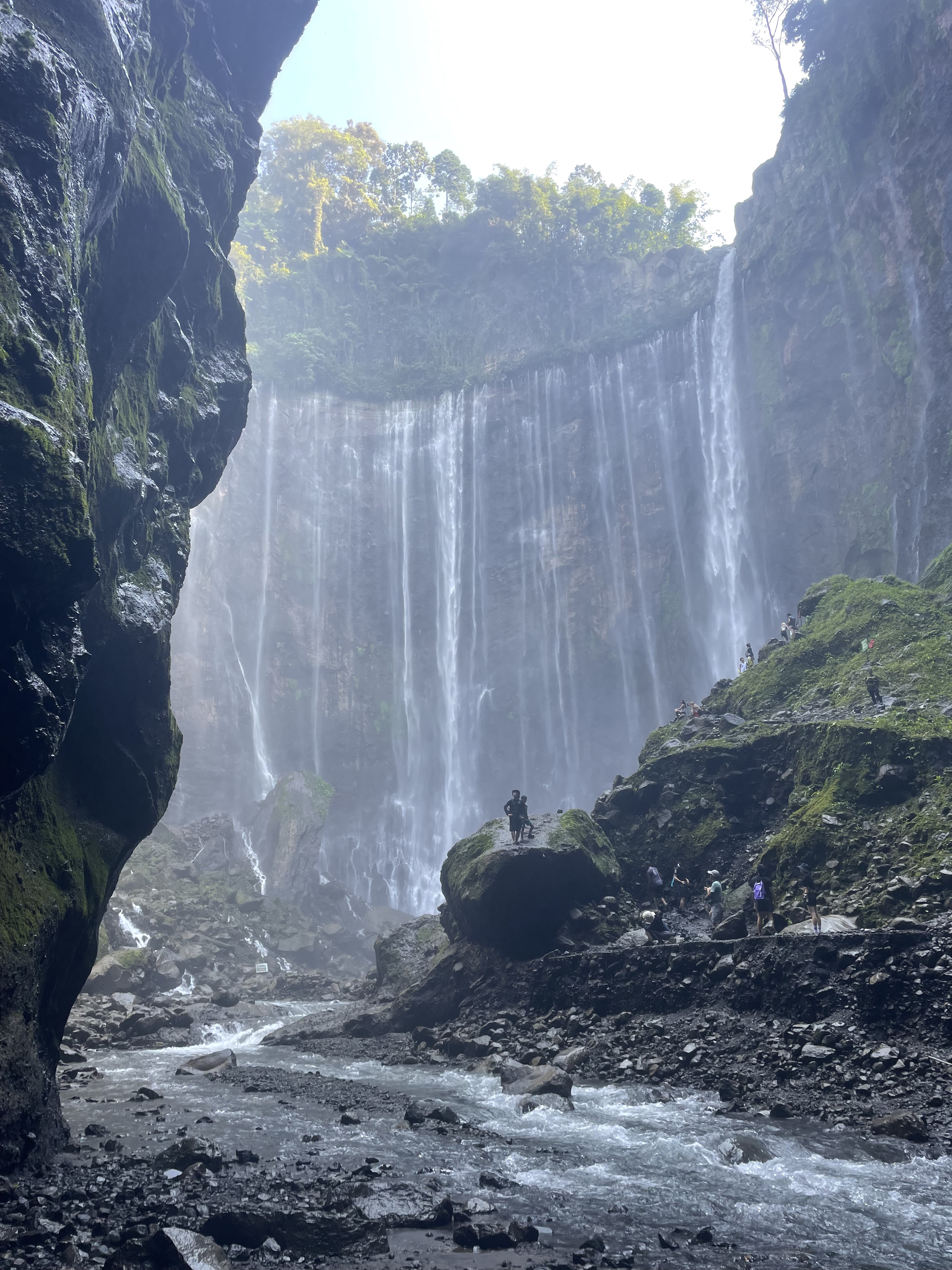 Nous continuons le chemin pour enfin tomber sur LA cascade, c’est vraiment l’un des plus beau spectacle que j’ai pu voir dans ma vie. Pour nous c’est un incontournable de Java. Par contre, il y avait déjà de premiers groupes de touristes venus en bus qui arrivaient en bas de la cascade, on vous conseille donc vraiment d’arriver tôt si vous préférez être tranquille.