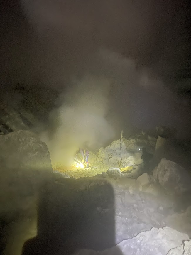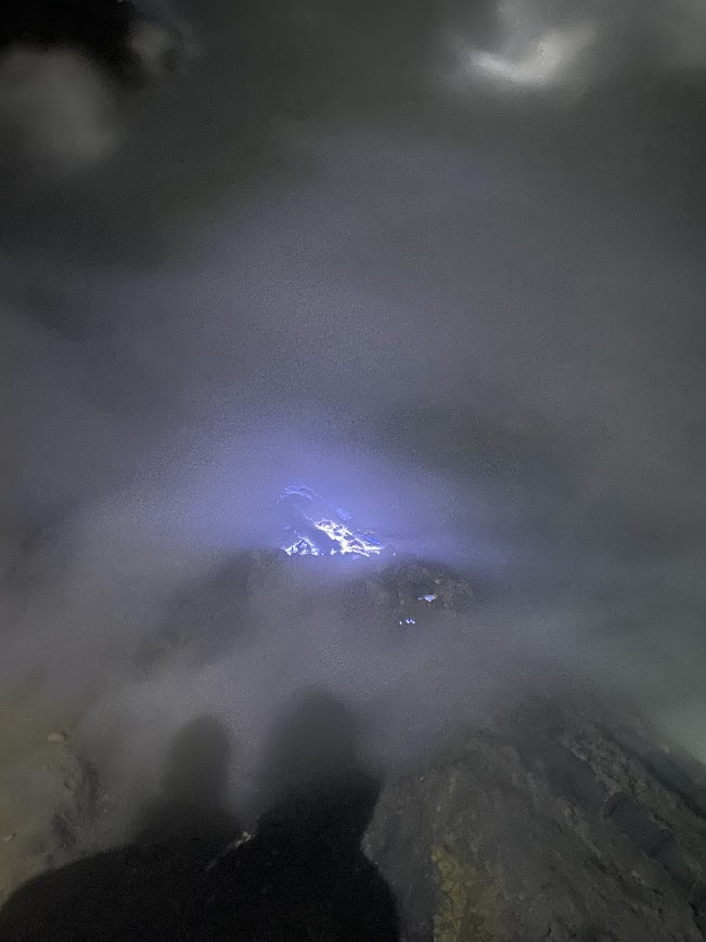 Notre objectif était de commencer l’ascension dès l’ouverture à 2h00 du matin pour observer les célèbres flammes bleues du Kawah Ijen, un phénomène unique au monde. En plein jour, on ne voit que du gaz ou du soufre liquide, mais la nuit révèle des flammes bleu électrique d’une intensité incroyable. Ce spectacle rare est provoqué par la combustion des gaz sulfuriques qui, au contact de l’air, s’enflamment à des températures dépassant 220 °C.