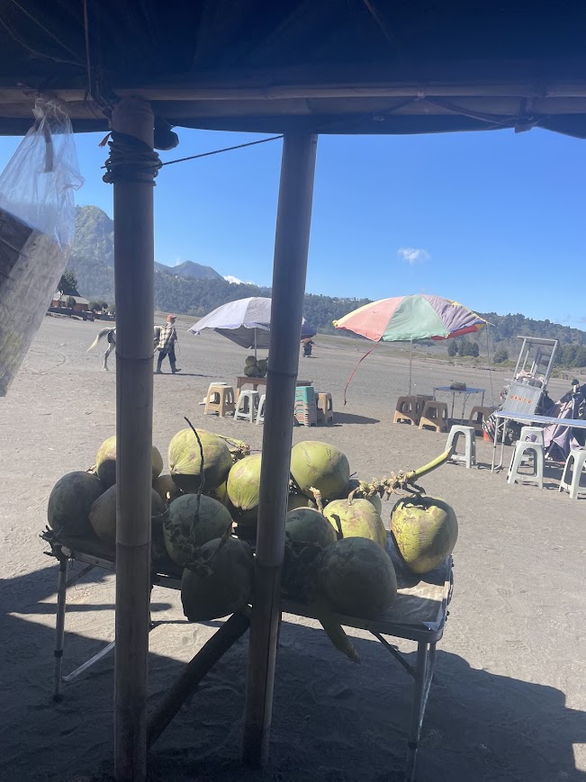 De retour sur la caldera, nous continuons en direction de Hillside. En chemin, nous croisons quelques locaux avec qui nous échangeons quelques mots. Attention, le soleil est vraiment intense : j’ai totalement brûlé lors de cette journée au Bromo malgré ma crème solaire SPF 50. Entre la réverbération du sable et l’absence d’ombre, prévoyez de quoi vous couvrir et appliquez régulièrement de la crème solaire !