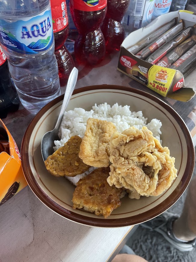 De notre côté, nous sommes arrivés avec un chauffeur depuis les chutes de Tumpak Sewu. Nous avons pu partager les frais avec un autre couple. Notre chauffeur nous a déposés à la gare ferroviaire, où nous avons décidé de manger un morceau. Puis, nous avons négocié avec un autre chauffeur pour qu’il nous emmène à la gare routière pour 30 000 IDR.