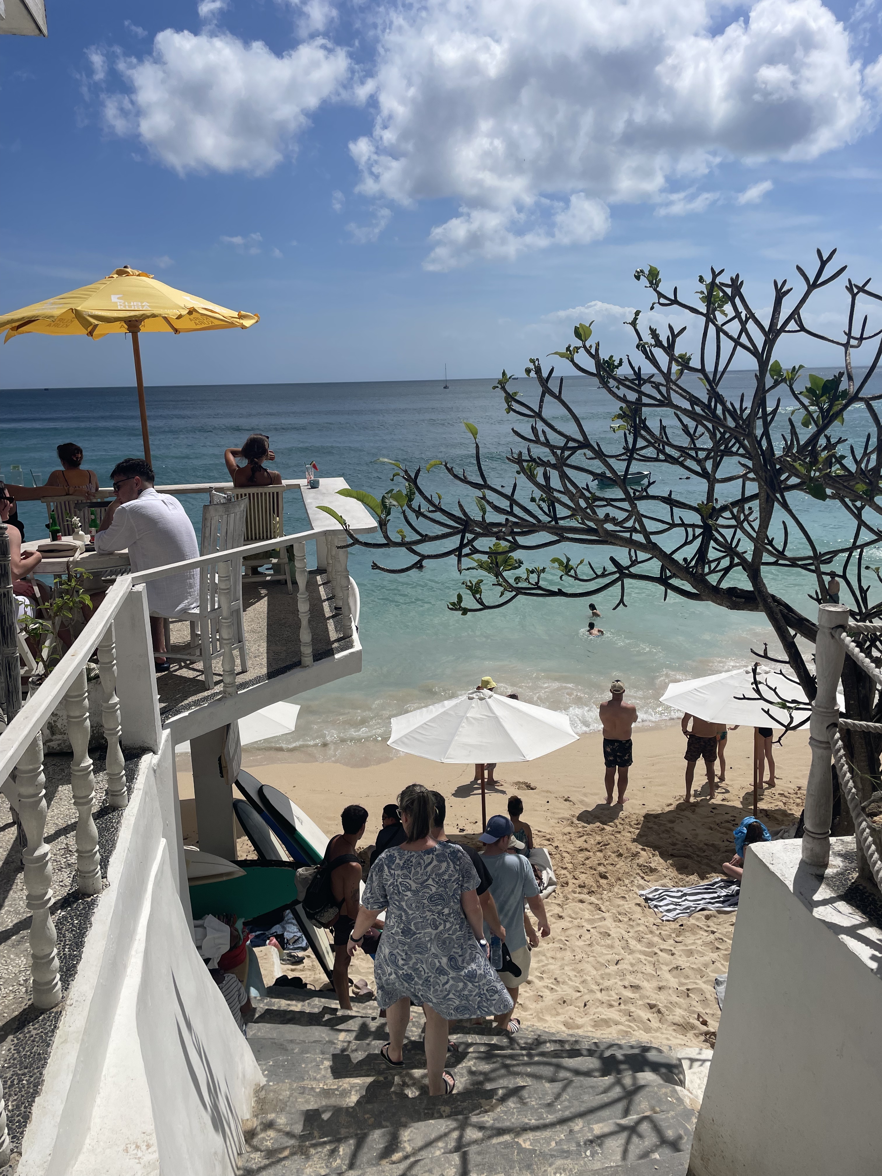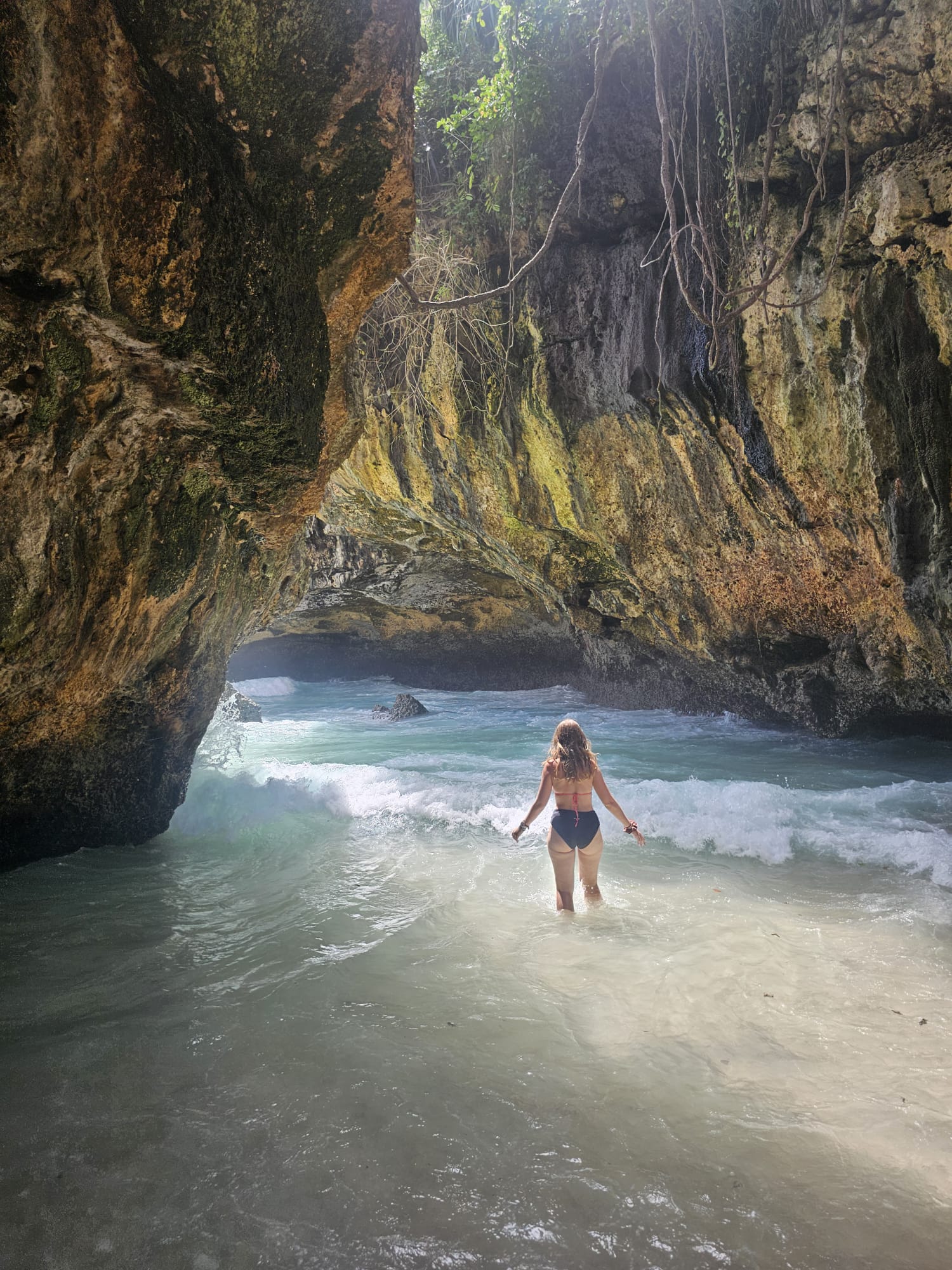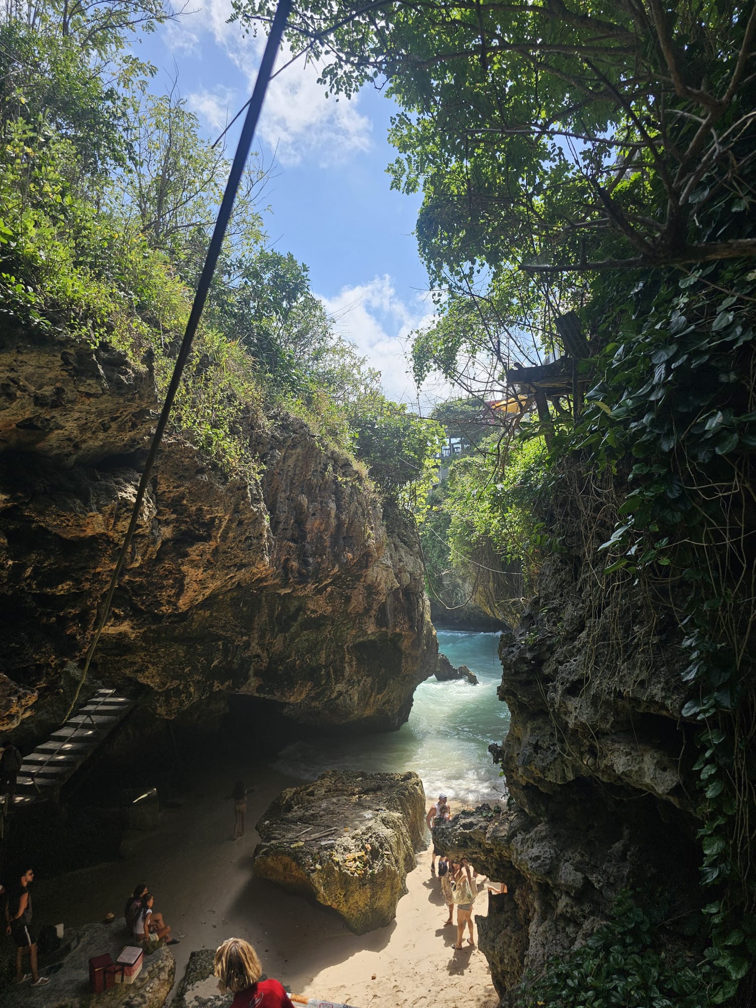Pour y accéder, il faut descendre plusieurs marches en pierre. Oui, ça peut tirer un peu sous le soleil, mais une fois en bas, ça vaut clairement le coup. Suluban, c’est aussi le spot des surfeurs pro : ils passent avec leurs planches à travers la grotte pour aller choper les vagues au large. C’est sympa à regarder et ça donne une vraie petite vibe surfer, même si ce n’est pas l’endroit que nous conseillons pour faire bronzette et se baigner.
