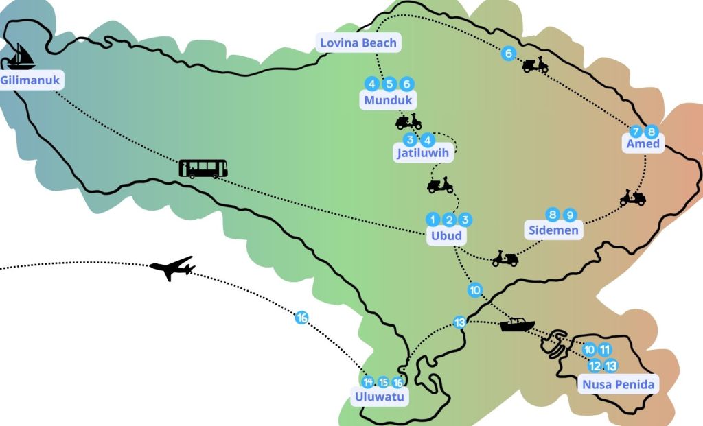 - Les îles voisines : Passez quelques jours sur Nusa Lembongan ou Nusa Penida pour des plages idylliques et du snorkeling.