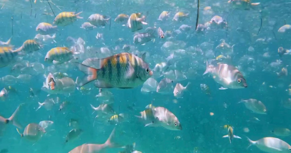 Notre première escale se fait sur une plage magnifique à Lagoa Azul où l’on peut acheter des noix de coco et des boissons. Une pause baignade s’impose dans ces eaux cristallines avant de repartir vers des fonds marins remplis de poissons. Honnêtement, je n’avais jamais vu autant de poissons au même endroit, c’était impressionnant !