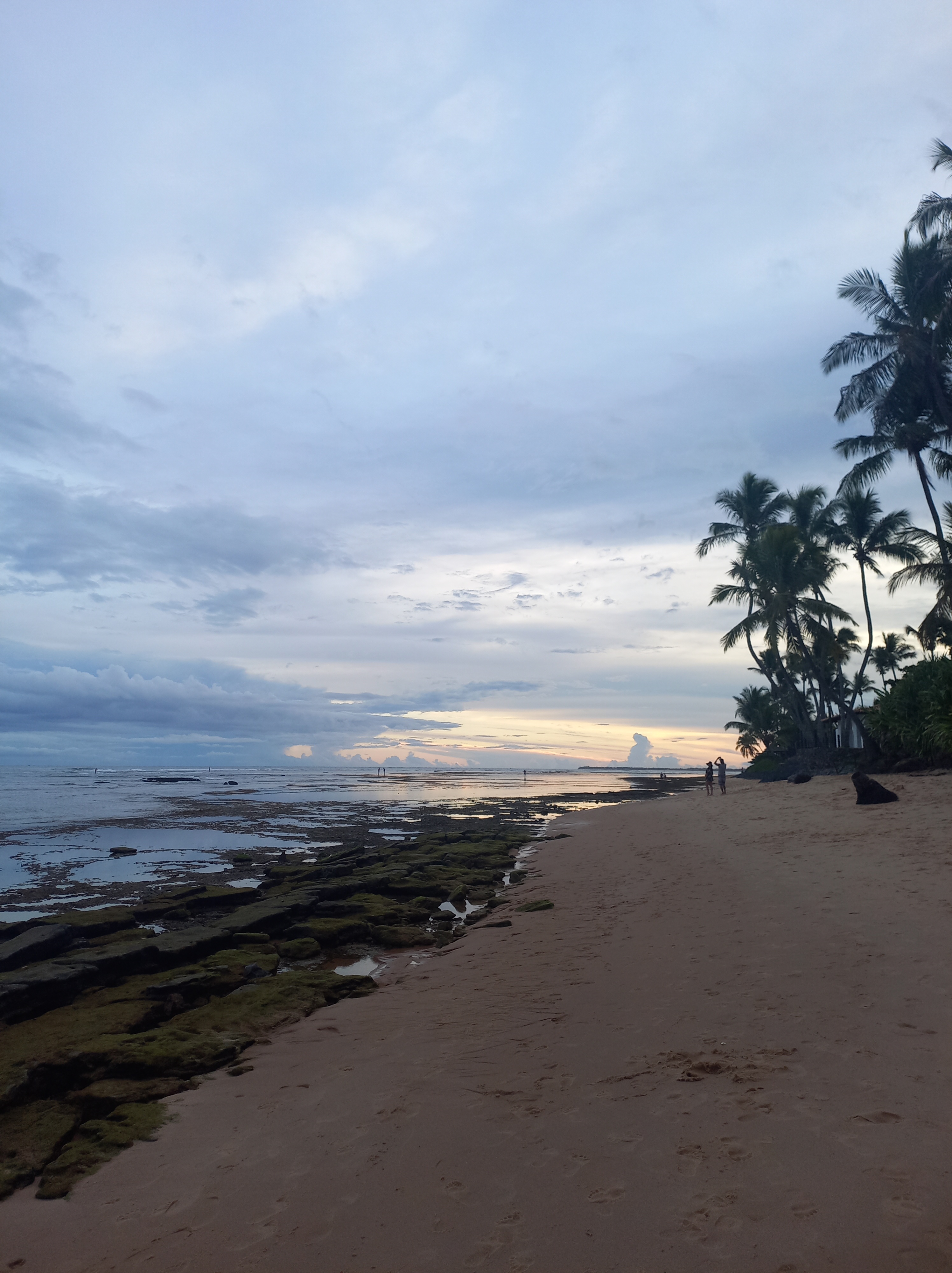Praia do Forte est un bon spot pour observer le coucher du soleil. Pour notre premier soir, nous étions sur la plage principale, Praia do Forte, et là, devant nos yeux ébahis, on assiste à un lâcher de bébés tortues dans l’océan. C’est organisé par le projet Tamar, un centre de protection des tortues, et c’était un spectacle incroyable.