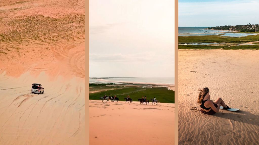 Après notre session de surf et une petite pause déjeuner, direction la location de Sandboard, l’activité phare de Jericoacoara ! Appelé « skibunda » littéralement le « ski-fesses » on descend la pente des dunes sur une sorte de luge mono patin. C’est comme faire du surf mais sur le sable. Vous avez le choix entre louer juste la planche ou prendre un cours.