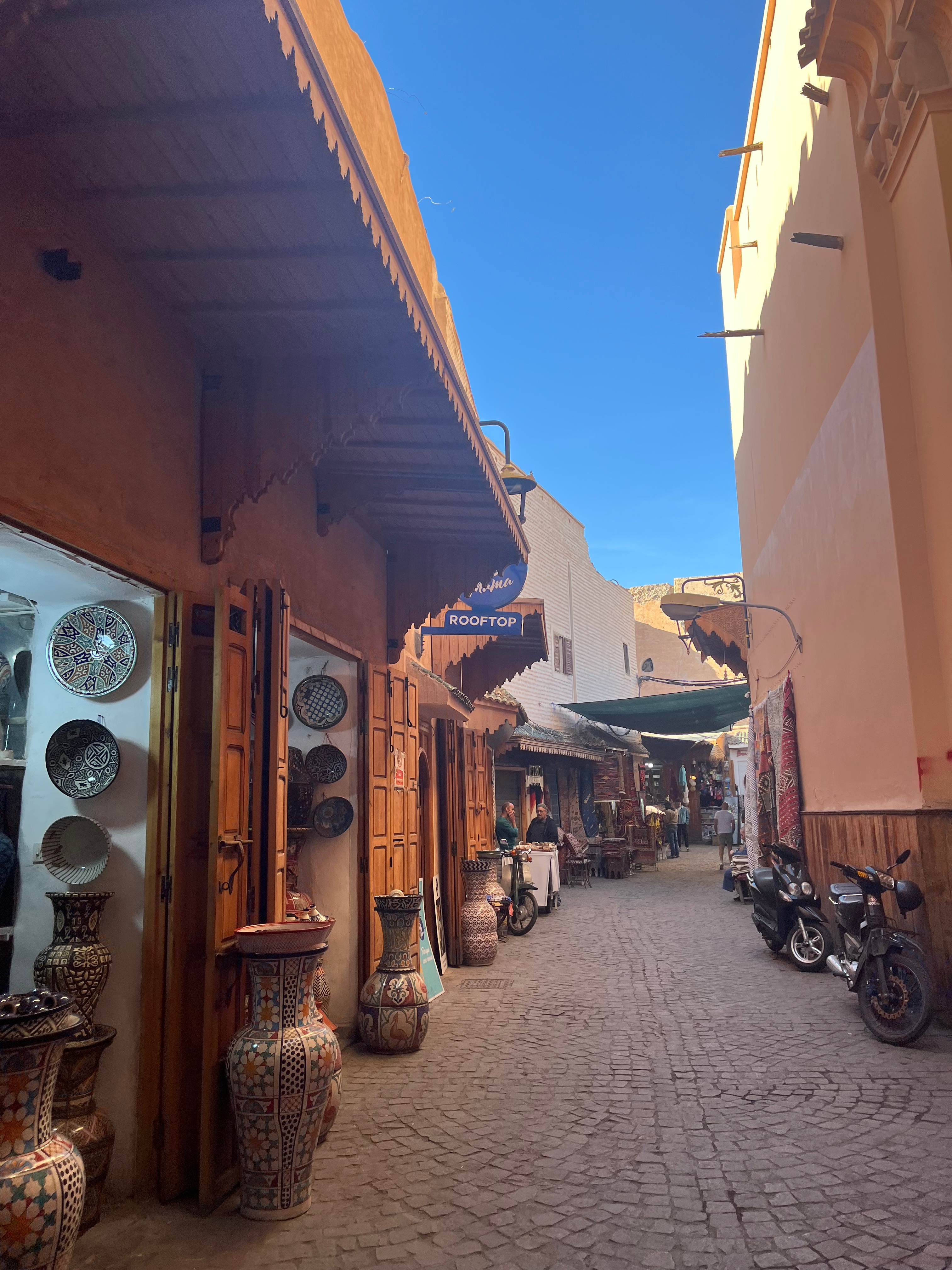 ArrivĂ©s en fin dâaprĂšs-midi, aprĂšs avoir rejoint notre hĂŽtel, nous sommes partis explorer les souks. Dans Marrakech, il y a diffĂ©rents souks, de vrais petits labyrinthes. Chacun a son ambiance :