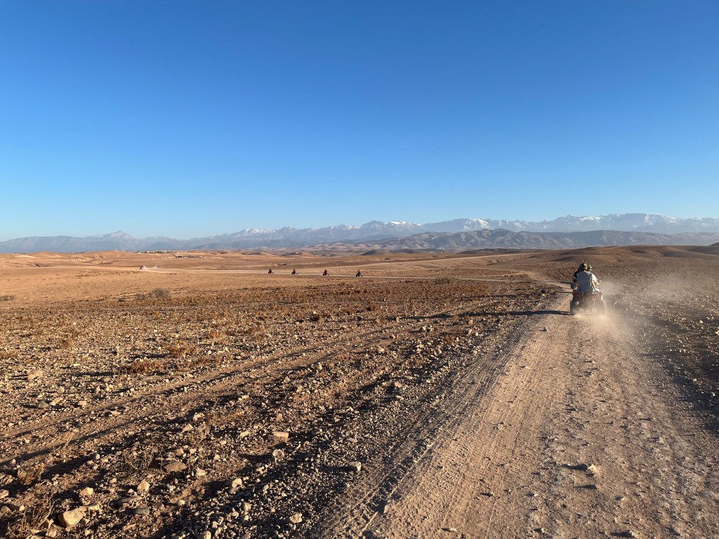 Câest clairement lâexcursion la plus prisĂ©e Ă Marrakech ! Le dĂ©sert est Ă seulement 30 km, parfait si tu nâas quâun weekend ou quelques jours. MĂȘme si câest touristique, il faut avouer que le paysage est superbe. Contrairement au Sahara, Agafay nâest pas un dĂ©sert de dunes, mais un dĂ©sert rocailleux (appelĂ© « reg »). Tu y trouveras des collines arides couleur ocre, des plateaux lunaires⊠et en prime, une vue magique sur les montagnes de lâAtlas enneigĂ©es en hiver ou au printemps.