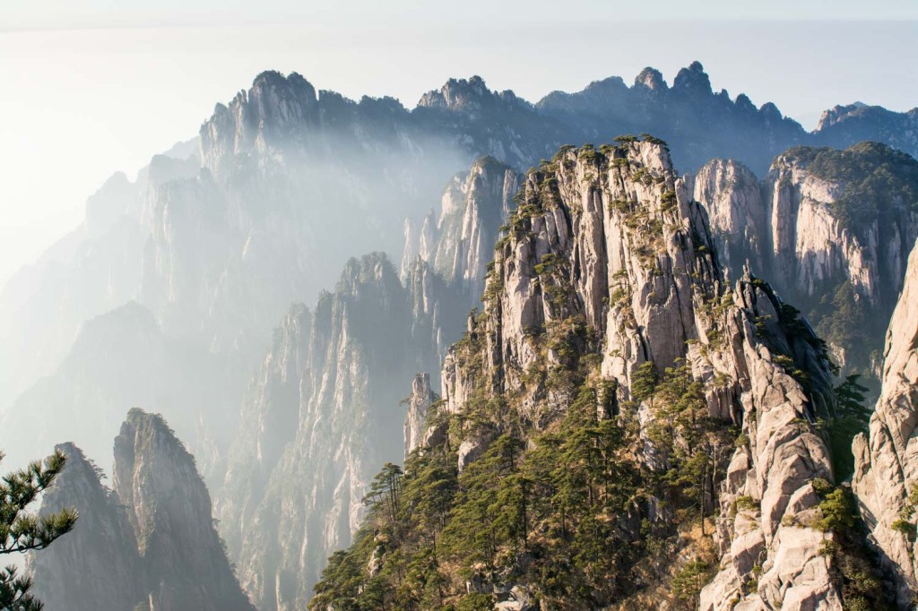 Bienvenue dans l’un des paysages les plus emblématiques de Chine ! Avec leurs pics granitiques acérés, leurs mers de nuages, leurs pins accrochés à flanc de falaise et leurs levers de soleil mystiques, les Montagnes Jaunes (Huangshan), situées à l’est de la Chine, semblent tout droit sorties d’une estampe chinoise.